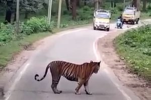 ಮೈಸೂರು: ನಾಗರಹೊಳೆ ರಾಷ್ಟ್ರೀಯ ಉದ್ಯಾನವನದ ಕಬಿನಿ ಹಿನ್ನೀರಿನ ಪ್ರದೇಶದ ರಸ್ತೆಯಲ್ಲಿ ಹುಲಿ ಕಾಣಿಸಿಕೊಂಡ ಹಿನ್ನಲೆ ಕೆಲ ಕಾಲ ವಾಹನ ಸವಾರರು ನಿಲ್ಲಬೇಕಾಯಿತು. ನಾಗರಹೊಳೆ ರಾಷ್ಟ್ರೀಯ ಉದ್ಯಾನವನಕ್ಕೆ ಹೊಂದಿಕೊಂಡಂತೆ...