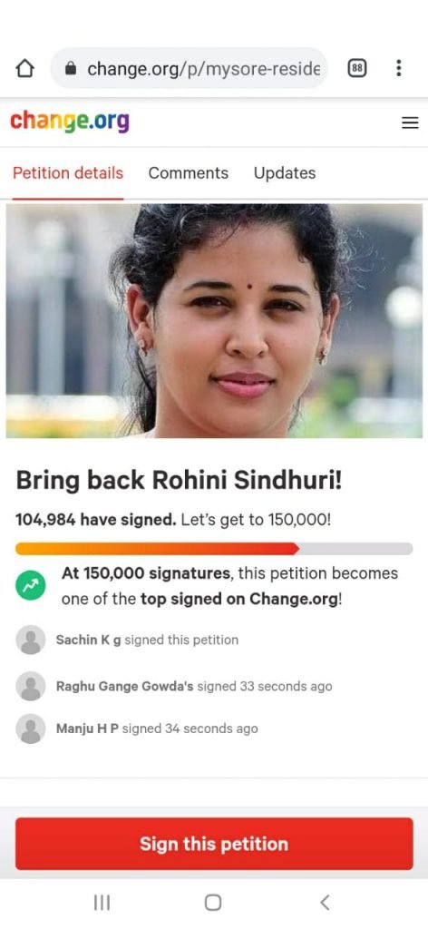ಒಂದು ಲಕ್ಷಕ್ಕೆ ಏರಿದ ‘ಬ್ರಿಂಗ್ ಬ್ಯಾಕ್ ರೋಹಿಣಿ ಸಿಂಧೂರಿ’ ಕ್ಯಾಂಪೇನ್!