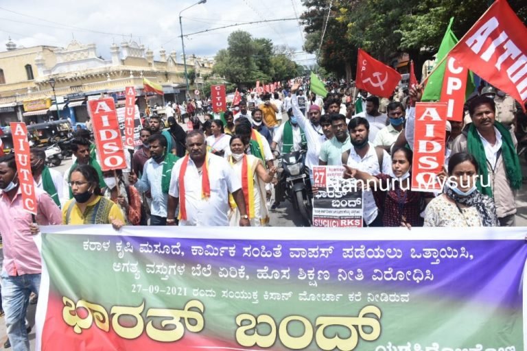 ಮೈಸೂರು,ಸೆ.27-ನೂತ‌ನ ಕೃಷಿ ಕಾಯ್ದೆಯನ್ನು ವಿರೋಧಿಸಿ, ಕಾಯ್ದೆಯನ್ನು ಹಿಂಪಡೆಯುವಂತೆ ಒತ್ತಾಯಿಸಿ ಸಂಯುಕ್ತ ಕಿಸಾನ್ ಮೋರ್ಚಾ ಕರೆ ನೀಡಿರುವ ಭಾರತ್ ಬಂದ್ ಗೆ ನಗರದಲ್ಲಿ ನೀರಸ ಪ್ರತಿಕ್ರಿಯೆ ವ್ಯಕ್ತವಾಗಿದೆ.ಜನ ಜೀವನ...