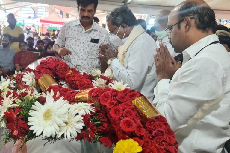 ವಿಧಾನಸಭೆಯ ವಿರೋಧ ಪಕ್ಷದ ನಾಯಕರಾದ ಸಿದ್ದರಾಮಯ್ಯ ಅವರು ಪುನೀತ್ ರಾಜಕುಮಾರ್ ಅವರ ಪಾರ್ಥೀವ ಶರೀರದ ದರ್ಶನ ಪಡೆದು ಅಂತಿಮ ನಮನ ಸಲ್ಲಿಸಿದರು. ಇದೇ ವೇಳೆ ಕುಟುಂಬದವರಿಗೆ ಸಾಂತ್ವನ...