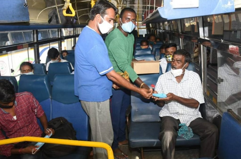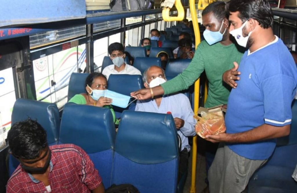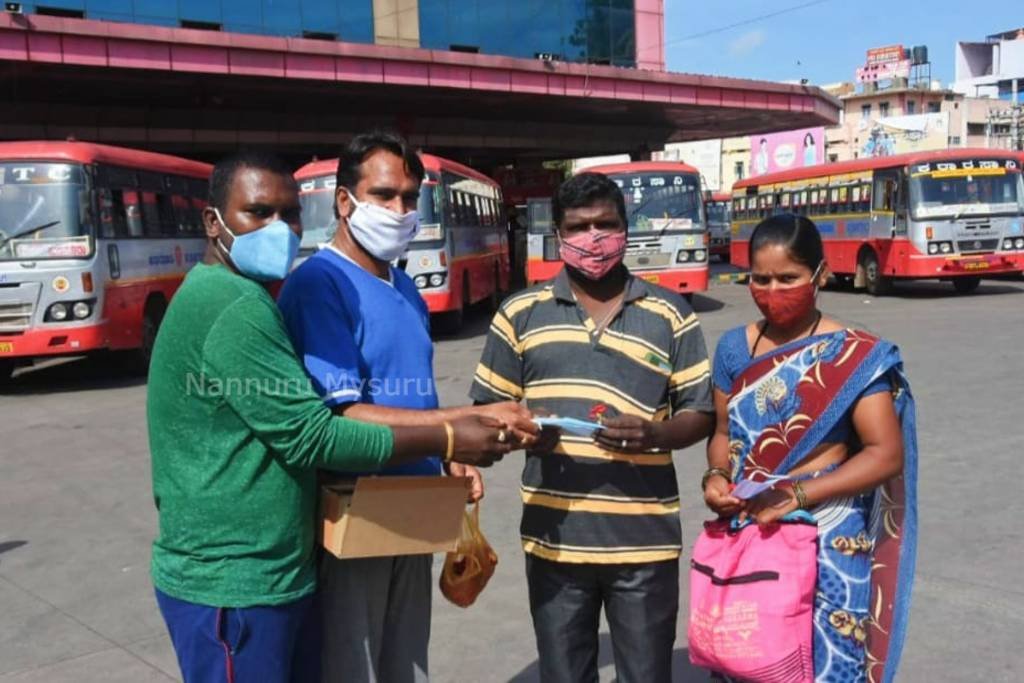 ಮೈಸೂರು: ಲಾಕ್ ಡೌನ್ ನಿರ್ಬಂಧವನ್ನು ಸಡಿಲಿಸಿದ್ದರಿಂದಾಗಿ ಇಂದಿನಿಂದ ಮೈಸೂರು ನಗರ ಹಾಗೂ ಗ್ರಾಮಾಂತರ ವಿಭಾಗದ ಬಸ್ ಗಳ ಸಂಚಾರ ಪುನರಾರಂಭ ಹಿನ್ನೆಲೆಯಲ್ಲಿ ಪ್ರಯಾಣಿಕರಿಗೆ ಉಚಿತವಾಗಿ ಮಾಸ್ಕ್, ಗುಲಾಬಿ ನೀಡಿ ಕೊರೊನಾ ಜಾಗೃತಿ ಮೂಡಿಸಲಾಗಿದೆ.