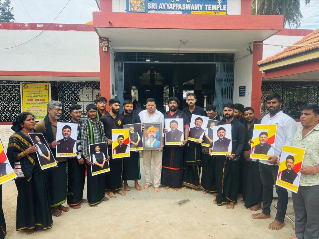 ಮಾಲಾಧಾರಿಗಳಾಗಿ ಶಬರಿಮಲೆ ಯಾತ್ರೆಗೆ ಸಿದ್ಧರಾಗಿರುವ ಭಕ್ತರು, ಡಿ.ಕೆ. ಶಿವಕುಮಾರ್ ಅವರ ಭಾವಚಿತ್ರ ಹಿಡಿದು ಜಪ, ಭಜನ ಮತ್ತು ಶ್ಲೋಕ ಪಠಣ ನಡೆಸಿ, ಅವರ ರಾಜಕೀಯ ಜೀವನ ಸುಗಮವಾಗಲಿ, ಅಡೆತಡೆಗಳು ದೂರವಾಗಲಿ ಎಂದು ದೇವರಲ್ಲಿ ಪ್ರಾರ್ಥಿಸಿದರು.