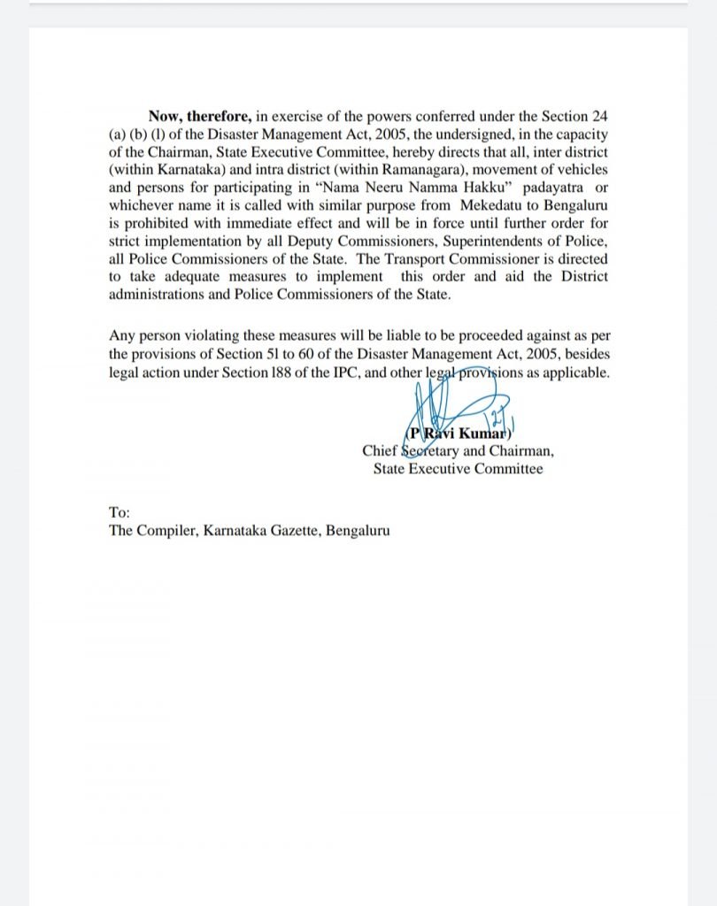 ಕಾಂಗ್ರೆಸ್ ಮೇಕೆದಾಟು ಪಾದಯಾತ್ರೆಗೆ ಸರ್ಕಾರದಿಂದ ಕಡಿವಾಣ!