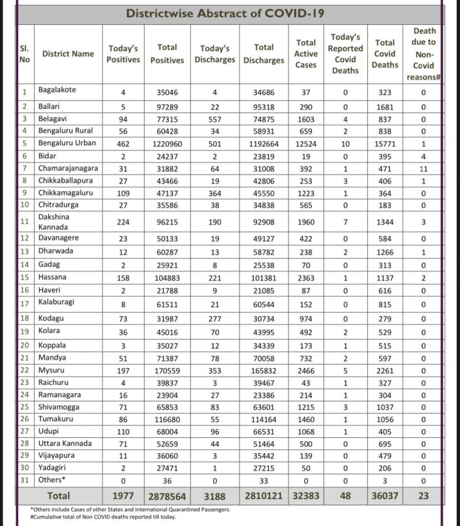 ಅಲ್ಲದೆ ಮೈಸೂರಿನಲ್ಲಿಂದು 05 ಮಂದಿ ಕೊರೊನಾ ಸೋಂಕಿತರು ಸಾವನ್ನಪ್ಪಿದ್ದು ಇದುವರೆಗೆ 2,261 ಕೊರೊನಾ ಸೋಂಕಿತರು ಮೃತರಾಗಿದ್ದಾರೆ.