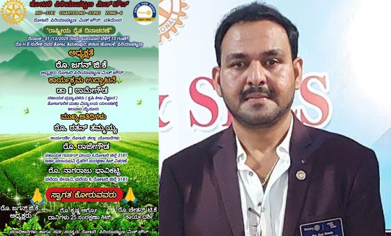 ರೋಟರಿ ಮಿಡ್ ಟೌನ್ ಪಿರಿಯಾಪಟ್ಟಣ ವತಿಯಿಂದ ಡಿ.31ರಂದು ರಾಷ್ಟ್ರೀಯ ರೈತ ದಿನಾಚರಣೆ