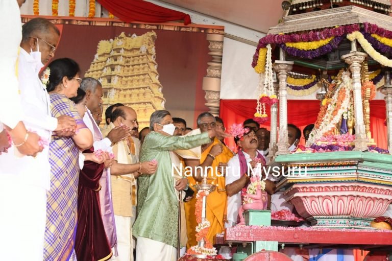 ಮೈಸೂರು,ಅ.7-ವಿಶ್ವವಿಖ್ಯಾತ ನಾಡಹಬ್ಬ ದಸರಾ ಮಹೋತ್ಸವಕ್ಕೆ ನಾಡಅಧಿದೇವತೆ ಚಾಮುಂಡೇಶ್ವರಿಯ ಸನ್ನಿಧಿಯಲ್ಲಿ ವಿದ್ಯುಕ್ತ ಚಾಲನೆ ದೊರೆಯಿತು. ಇಂದು ಬೆಳಿಗ್ಗೆ ಶುಭಲಗ್ನದಲ್ಲಿ ಚಾಮುಂಡೇಶ್ವರಿ ದೇವಿಯ ಉತ್ಸವ ಮೂರ್ತಿಗೆ ಪುಷ್ಪಾರ್ಚನೆಗೈದು, ದೀಪ ಬೆಳಗುವ...