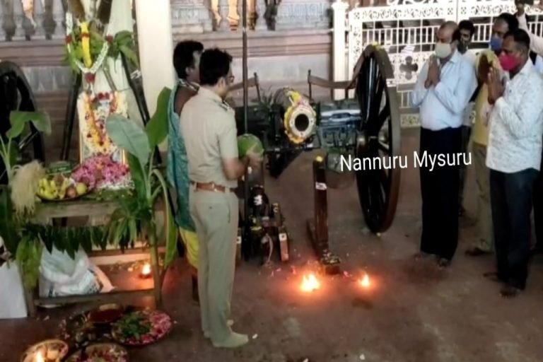 ಮೈಸೂರು,ಸೆ.20-ನಾಡಹಬ್ಬ ದಸರಾ ಜಂಬೂಸವಾರಿಯಲ್ಲಿ ಪಾಲ್ಗೊಳ್ಳುವ ಗಜಪಡೆಗೆ ಕುಶಾಲತೋಪು ಸಿಡಿಸಿ ತಾಲೀಮು ನೀಡಲಾಗುವುದು. ಅದಕ್ಕಾಗಿ ಇಂದು ಅರಮನೆ ಆವರಣದಲ್ಲಿ ಕುಶಾಲತೋಪುಗಳಿಗೆ ಸಾಂಪ್ರದಾಯಿಕವಾಗಿ ಪೂಜೆ ಸಲ್ಲಿಸಲಾಯಿತು.ಈ ವೇಳೆ ಮಾತನಾಡಿದ ನಗರ...