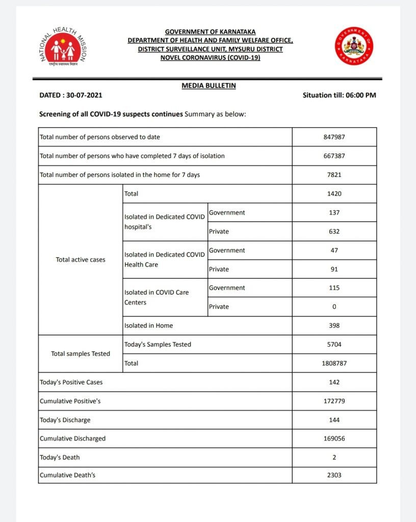 ಮೈಸೂರಿನಲ್ಲಿ ಇಂದು 144 ಮಂದಿ- ಗುಣಮುಖರಾಗಿ ಡಿಸ್ಚಾರ್ಜ್- ಇಬ್ಬರು ಸಾವು!