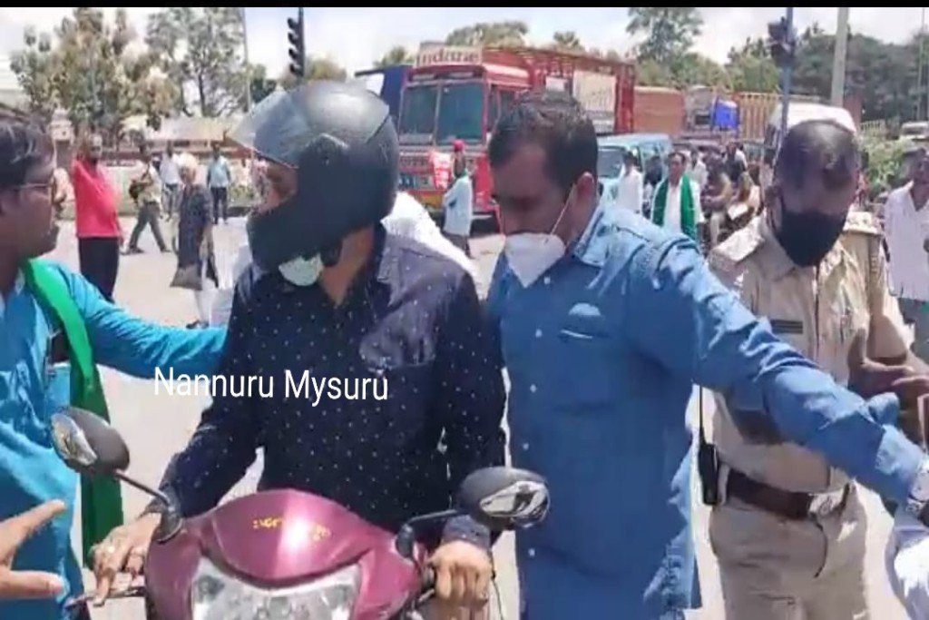 ಮೈಸೂರು-ನಂಜನಗೂಡು ರಸ್ತೆಯಲ್ಲಿರುವ ಎಪಿಎಂಸಿ ಜಂಕ್ಷನ್ ನಲ್ಲಿ ಜಮಾಯಿಸಿದ ರೈತರು ಪ್ರತಿಭಟನೆ ನಡೆಸಿ ಕೇಂದ್ರ ಸರ್ಕಾರದ ವಿರುದ್ಧ ಘೋಷಣೆ ಕೂಗಿ ಆಕ್ರೋಶ ವ್ಯಕ್ತಪಡಿಸಿದರು.