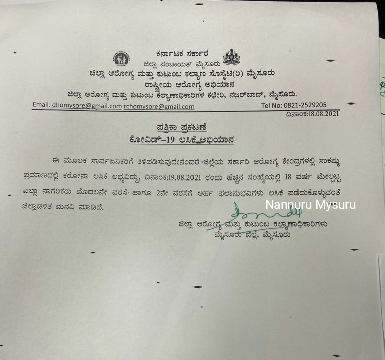 ಮೈಸೂರಲ್ಲಿ ಫಸ್ಟ್ & ಸೆಕೆಂಡ್ ವಾಕ್ಸಿನ್ ಫುಲ್ ಸ್ಟಾಕ್ ಇದೆ ಹಾಕಿಸಿಕೊಳ್ಳಿ!